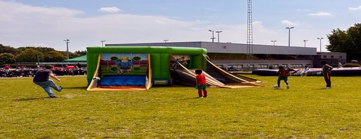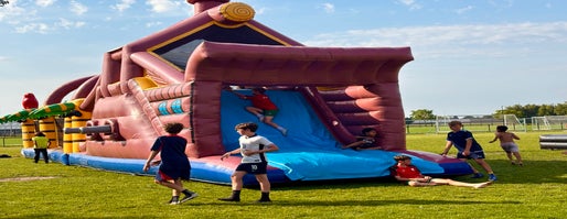 Veel volk, een fijn zonnetje, lekkere frietjes en coole springkastelen voor jong en oud .