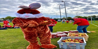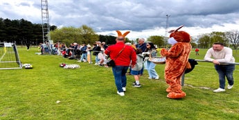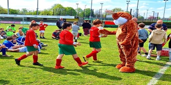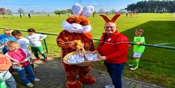 Leuke voetbalwedstrijden, een uitstekende sfeer, veel volk, mooi weer en een vrolijk rondhuppelende paashaas 🐰...